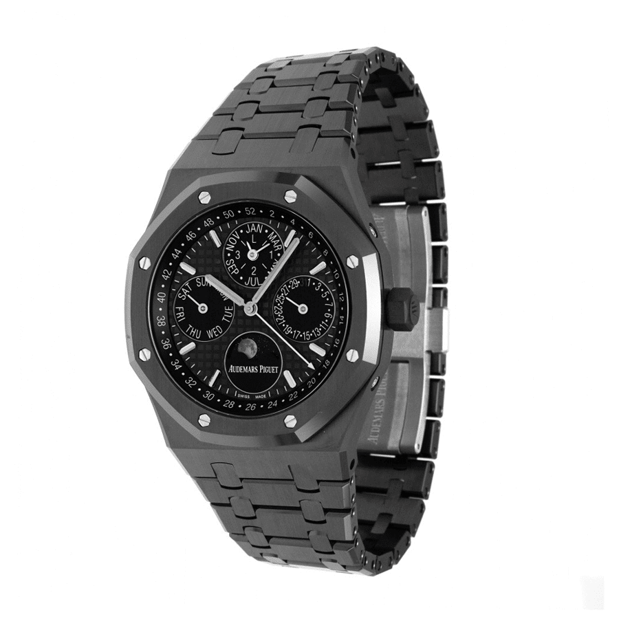 The Audemars Piguet Royal Oak Perpetual Calendar 26579CE.OO.1225CE.01 Replica is a high quality watch. It features a black ceramic case with a 904L stainless steel bezel and a sapphire crystal. The movement is an automatic AP 5134 with a power reserve of 60 hours and a precision of (-3/+3 sec/day) within COSC certification limits. The dial is black with stick and dot indices and 904L stainless steel stick hands.