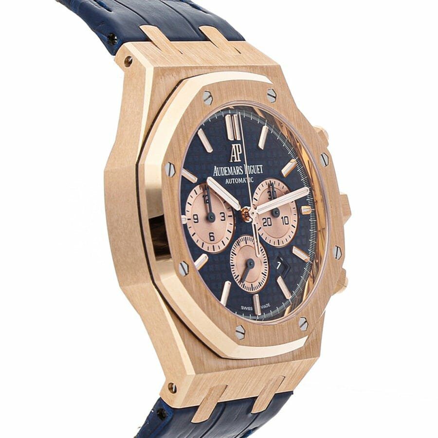 The Audemars Piguet Royal Oak Automatic Replica is a luxury watch. It features a 904L stainless steel case and bezel in a beautiful pink gold color. The case is 41.00 mm in size and 11.00 mm thick. The bracelet is made of crocodile skin and is adjustable to fit all sizes. The clasp is stainless steel and also pink gold. The dial is blue with stick and dot indices and Royal Oak hour-markers. The movement is an AP 2385 automatic caliber with a power reserve of 60 hours and a precision of (-3/+3 sec/day) within COSC certification limits