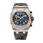The Audemars Piguet Royal Oak Offshore Rose Gold Blue 26471SR.OO.D101CR.01 Replica is a high quality watch. It features a 904L stainless steel case with a transparent color and a rose gold bezel. The movement is an automatic AP 3126 / 3840 with a power reserve of 60 hours and a precision of (-3/+3 sec/day) within COSC certification limits. The dial is nicknamed the Méga Tapisserie and is blue with Arabic numerals and 904L stainless steel hour markers. The bracelet is made of crocodile leather with an adjustable link and a 904L stainless steel AP folding clasp.