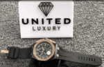 The dial is nicknamed the Mu00e9ga Tapisserie and is black in color. The indices are stick and dot and the hour markers are ceramic sticks. The hands are 904L stainless steel sticks. The movement is an automatic AP 3126 / 3840 with a power reserve of 60 hours and a precision of (-3/+3 sec/day) within COSC certification limits. It also has a sweep motion second hand and functions for hours. minutes. small seconds. date. and chronograph. It has passed the 30m water resistance test and comes with a full 2 year international United Luxury warranty.