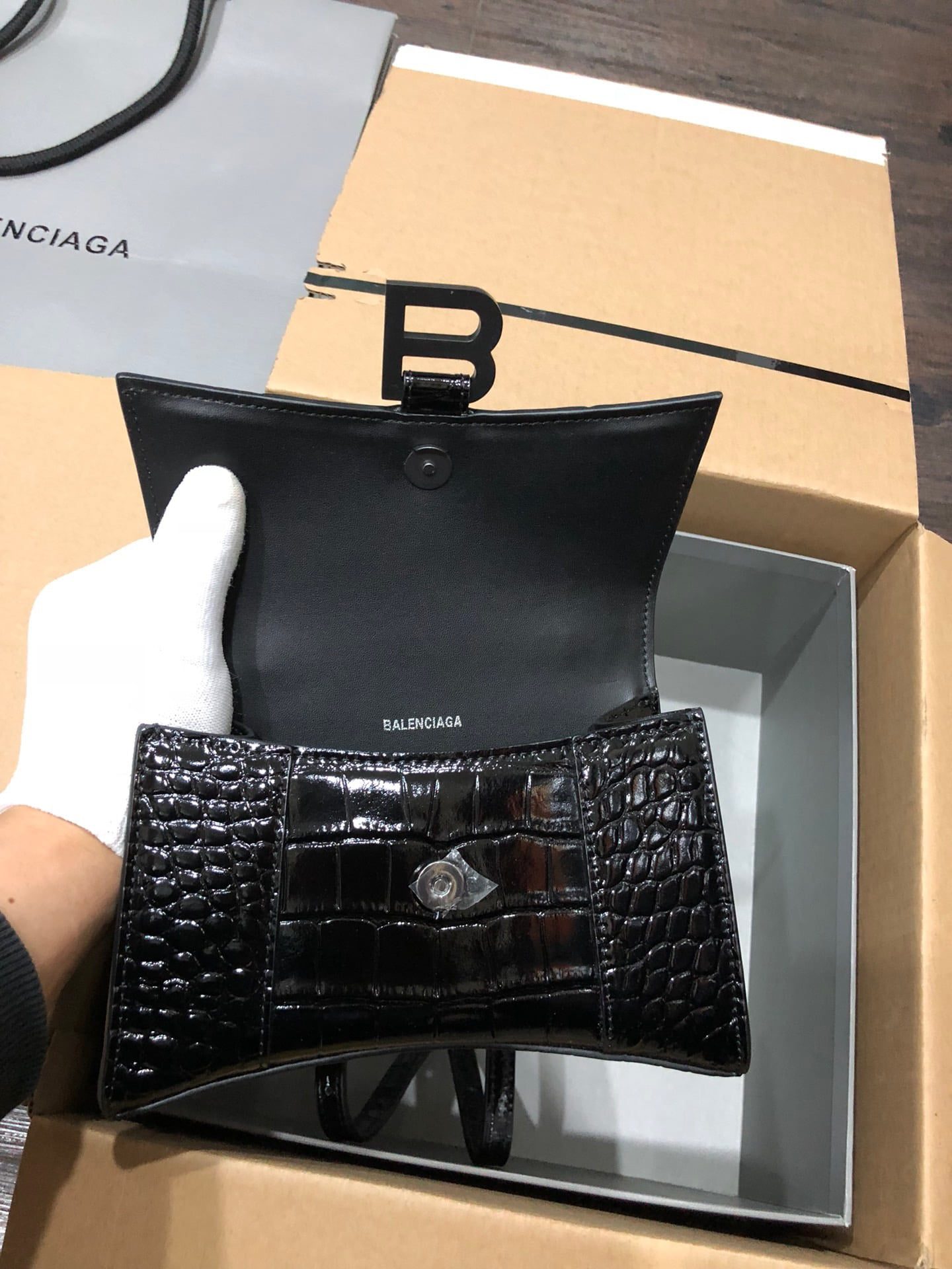 Balenciaga hourglass crocodile with black buckle size S: 19*8*21cm L: 23x10x24cm