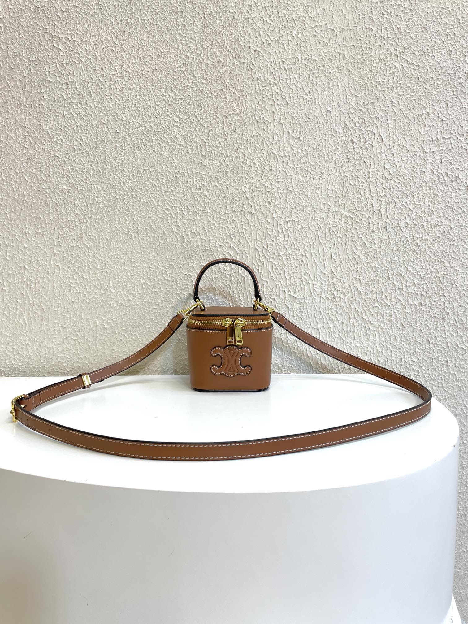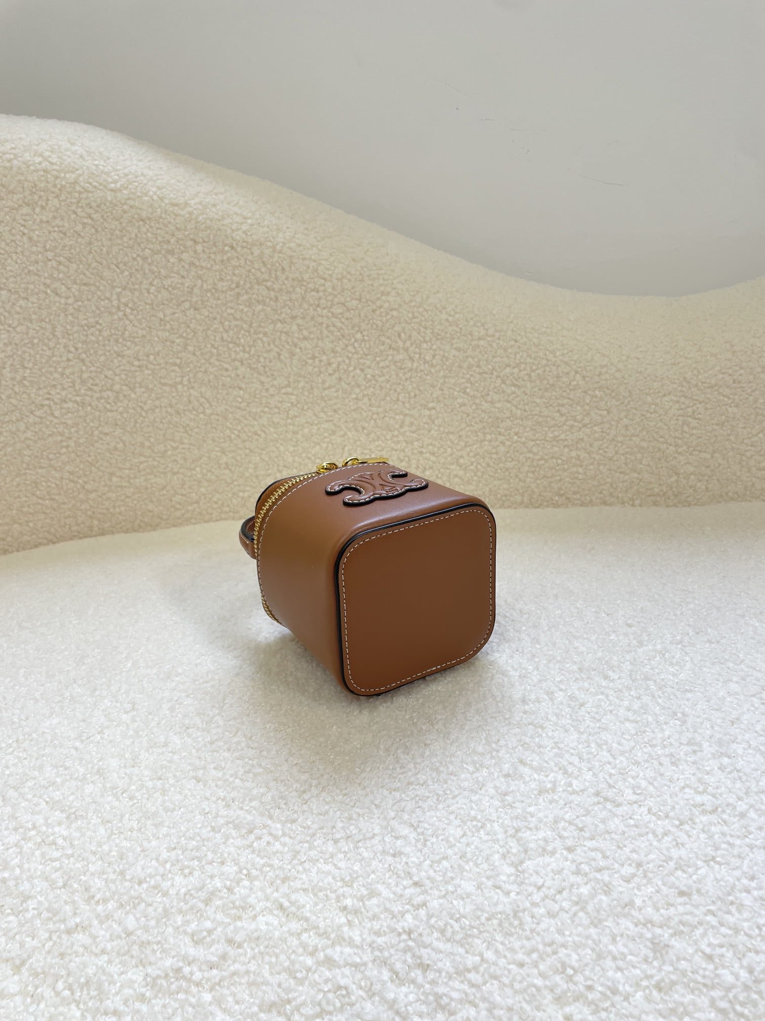 CELINE 23s Spring/Summer – Mini smooth leather makeup case brown 8080 Size: 9.5* 8* 9cm