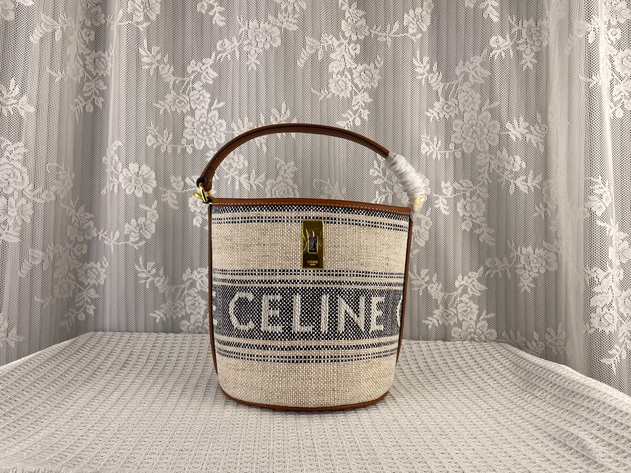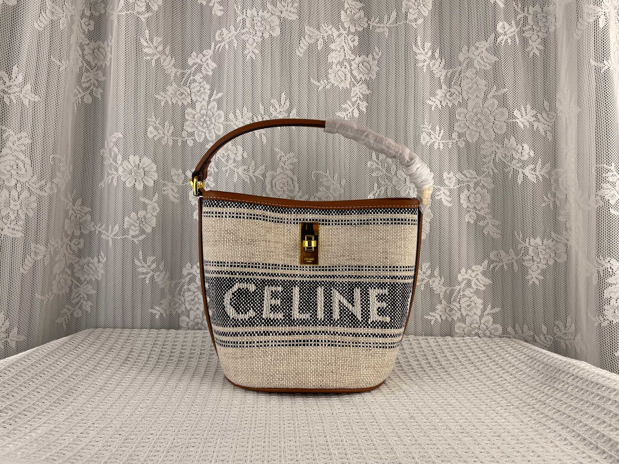 BUCKET 16 CELINE Fabric Cow leather bucket bag