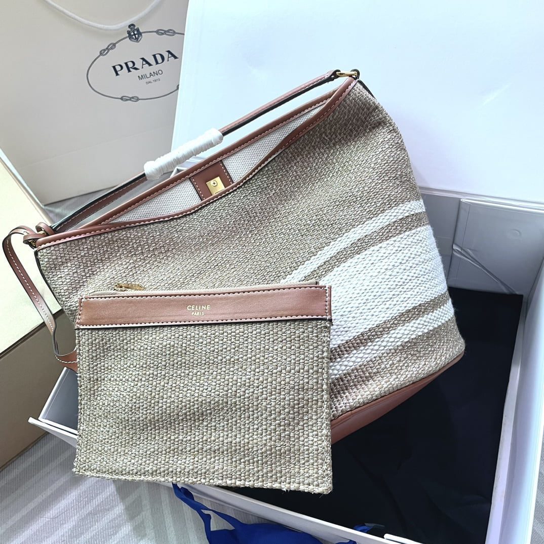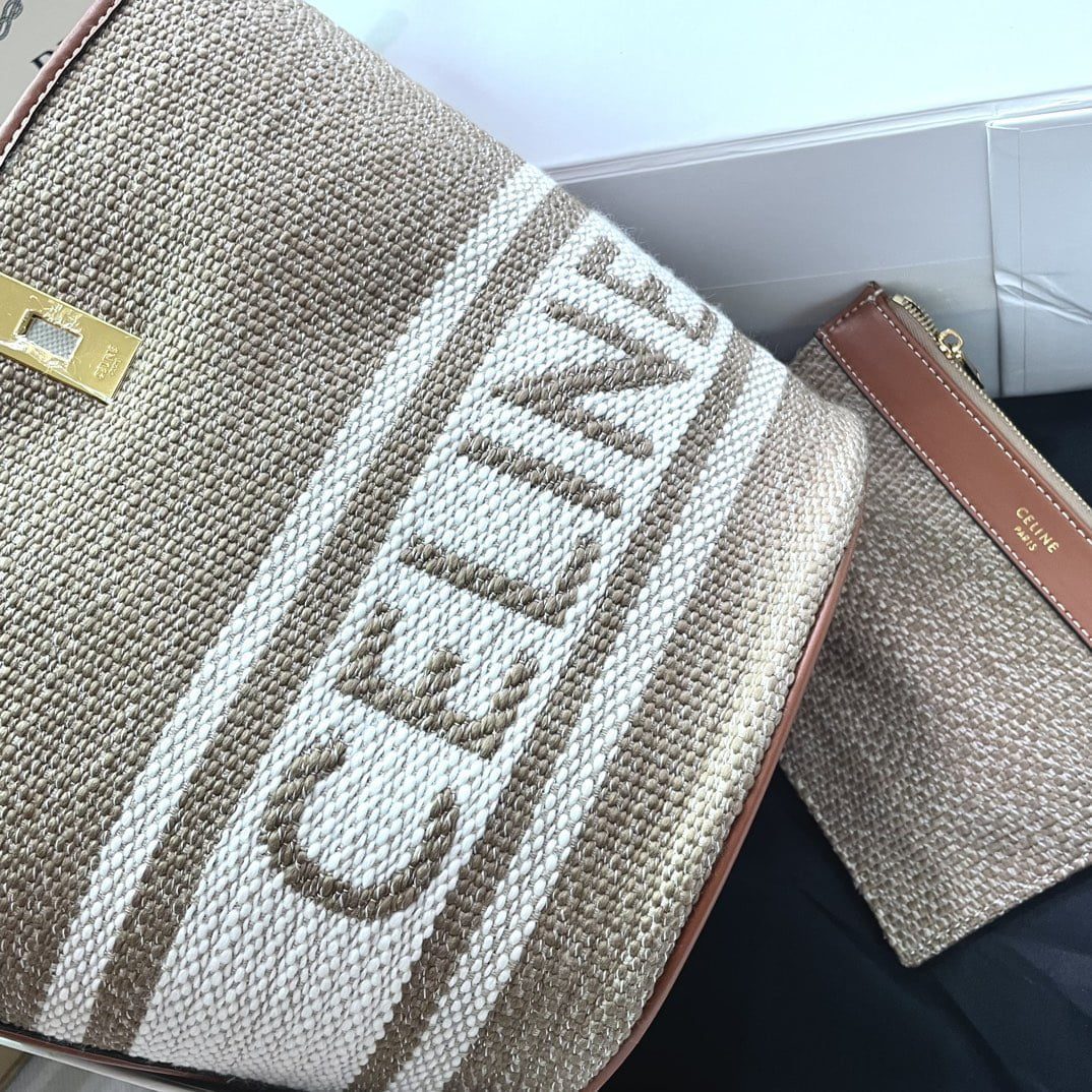 CELINE Mini jacquard stripe fabric cow leather bucket bag with little wallet Size:23*25*23CM