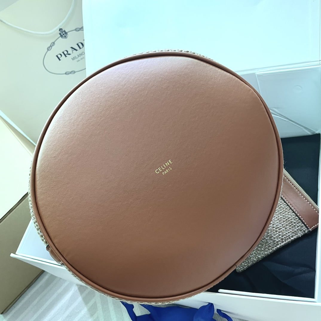CELINE Fabric cow leather mini bucket bag Size:16*18*16cm