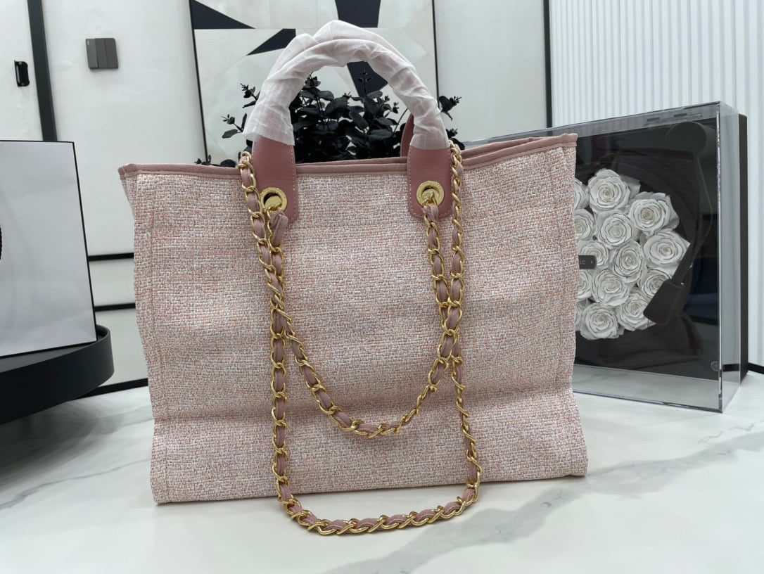 66941 Pink light Gold remember to bring her when you travel! chanel shopping bag spring and summer new color! The beach bag shopping bag is made of canvas material, simple and casual design is popular, and the capacity is large enough and light and fashionable suitable for daily use, more suitable for business travel and gentle leisure collocation, practicability is very high! Size: 38cm