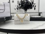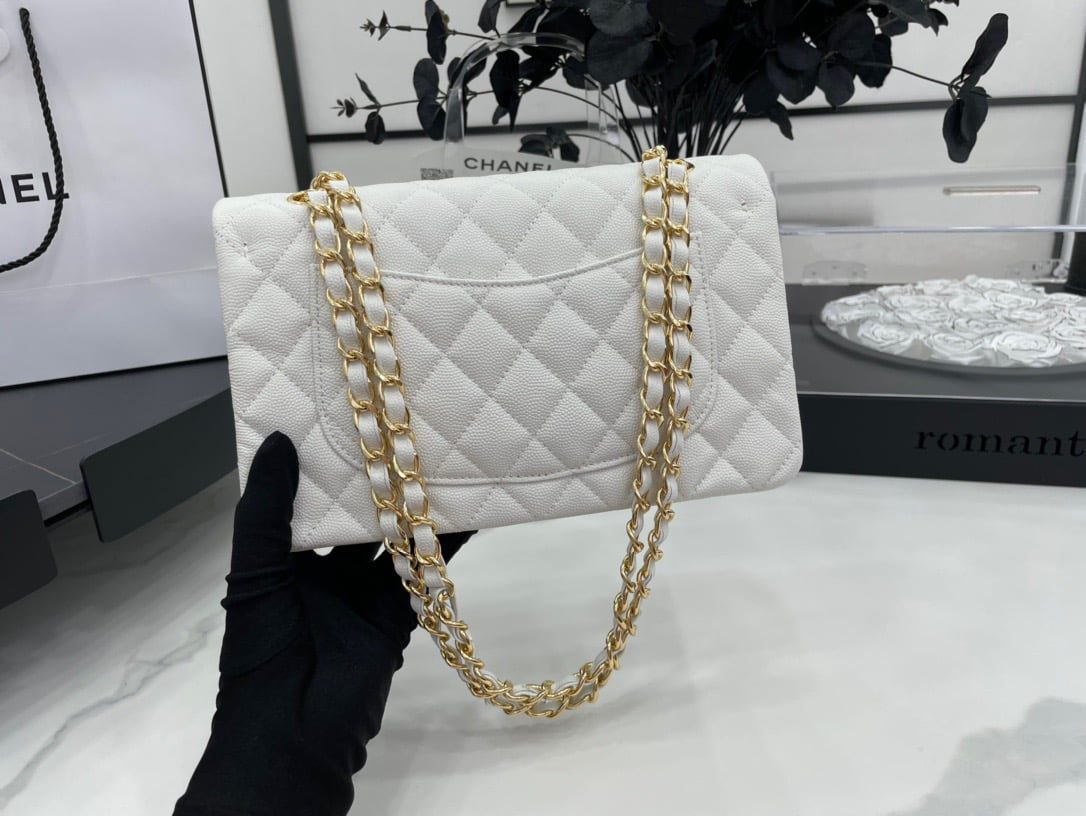 Chanel classic flap caviar leather crossbody bag with gold hardware white