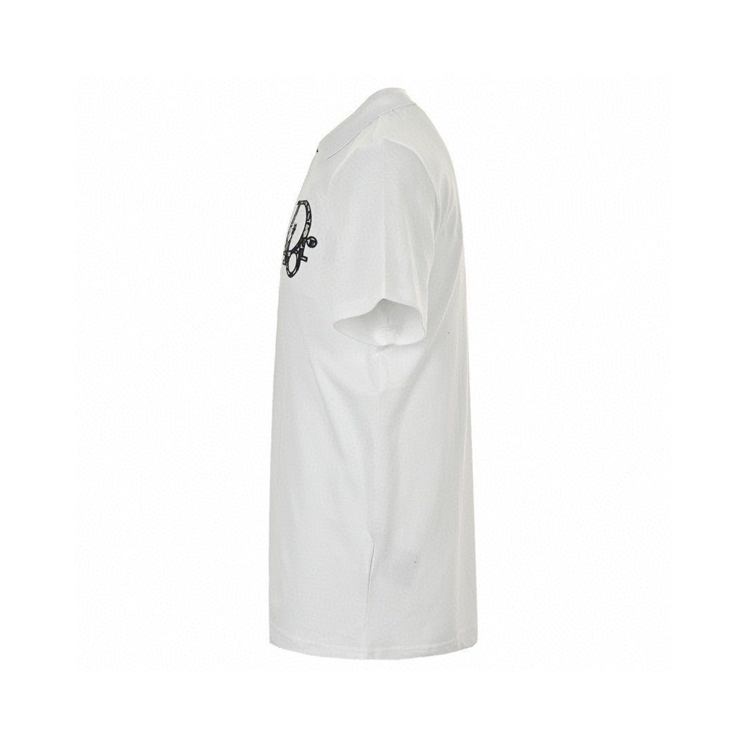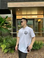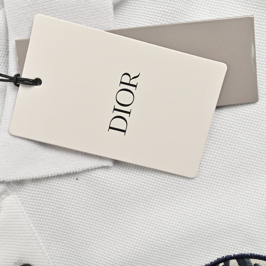 This Dior polo shirt features a sophisticated design with the iconic Dior Oblique pattern embroidered on the chest. The classic white color and refined details make it a stylish and elegant addition to any wardrobe. perfect for both casual and semi-formal occasions.