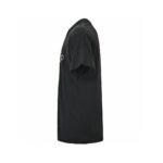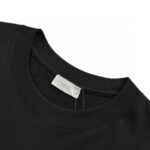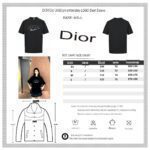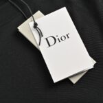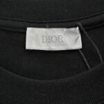 This Dior t-shirt features a unique design with the brand name and a stylized safety pin graphic. along with the signature Christian in elegant script. The sleek black background emphasizes the bold and creative design. making it a fashionable and distinctive addition to any wardrobe.