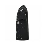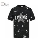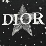 This Dior t-shirt features a striking design with the Dior logo and star elements scattered across the front. The high-quality black cotton fabric serves as an excellent canvas for the bold white logo and star accents. creating a visually captivating piece. Combining luxury with a playful touch. this t-shirt adds a unique and stylish flair to any casual outfit.