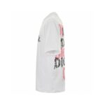 This Dior t-shirt features a bold design with the Dior logo in a paint stroke style. The white fabric serves as a clean canvas for the artistic logo. which combines pink and black strokes to create a dynamic and eye-catching look. Perfect for adding a touch of contemporary art to your casual wardrobe.