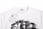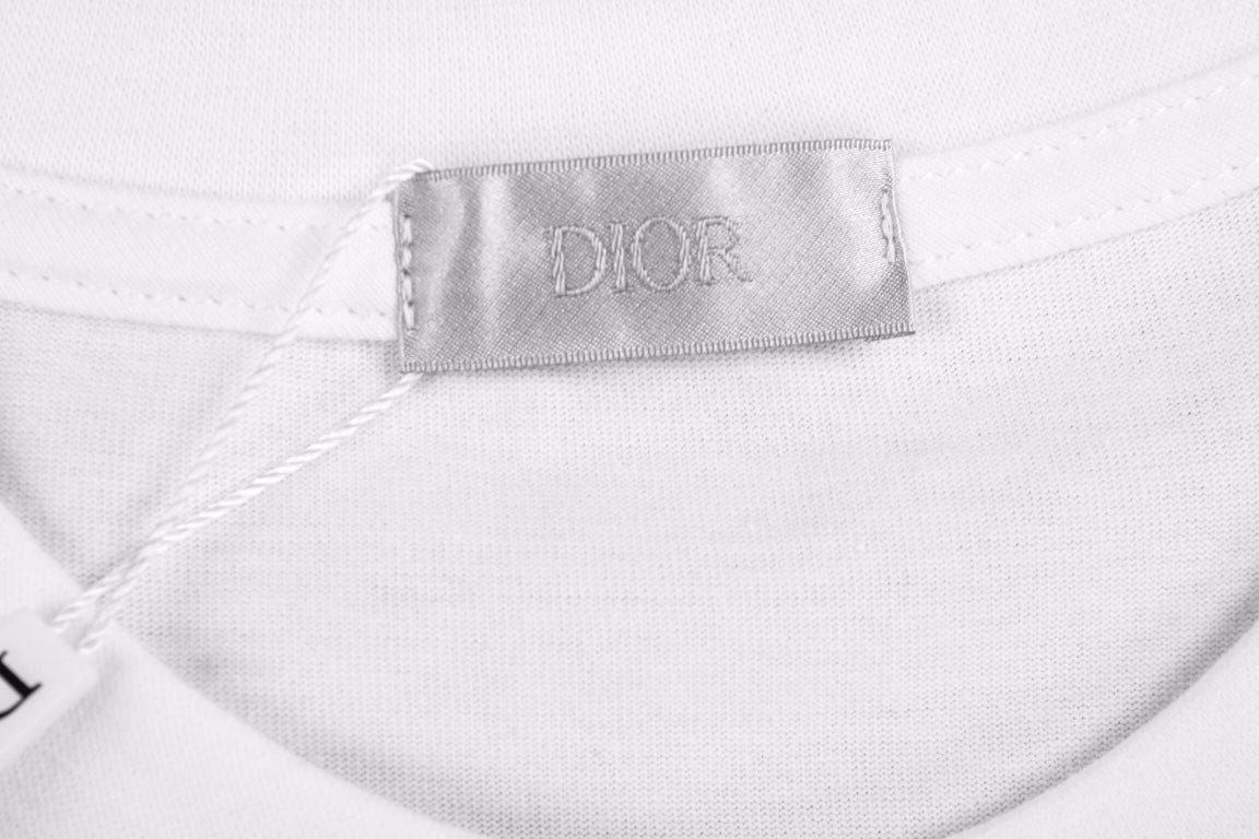 This Dior t-shirt features an artistic logo design. It is white with black detailing. Perfect for a creative and stylish look.