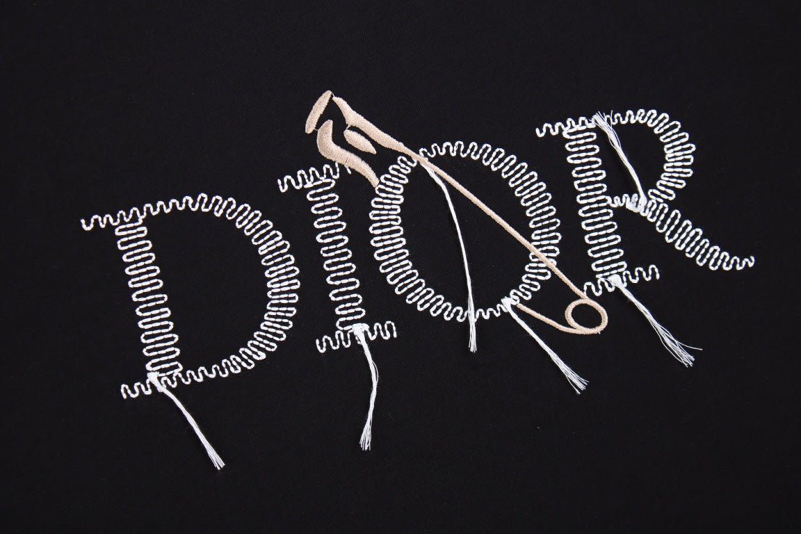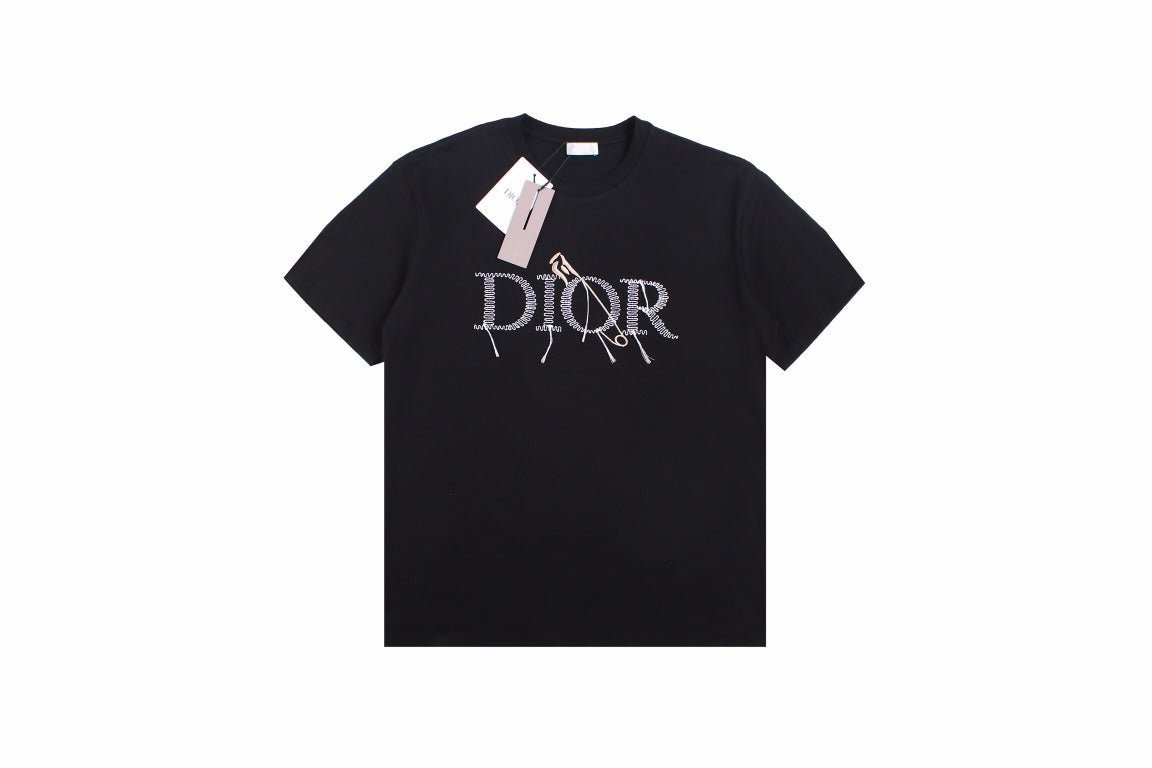 This Dior t-shirt features a unique tools and logo design. It is black with white detailing. Perfect for a bold and fashionable look.