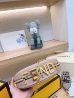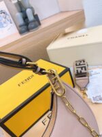 首页 BAGS FENDI FENDI Patent leather half moon bag Light Pink with chain strap Size: 34*16cm