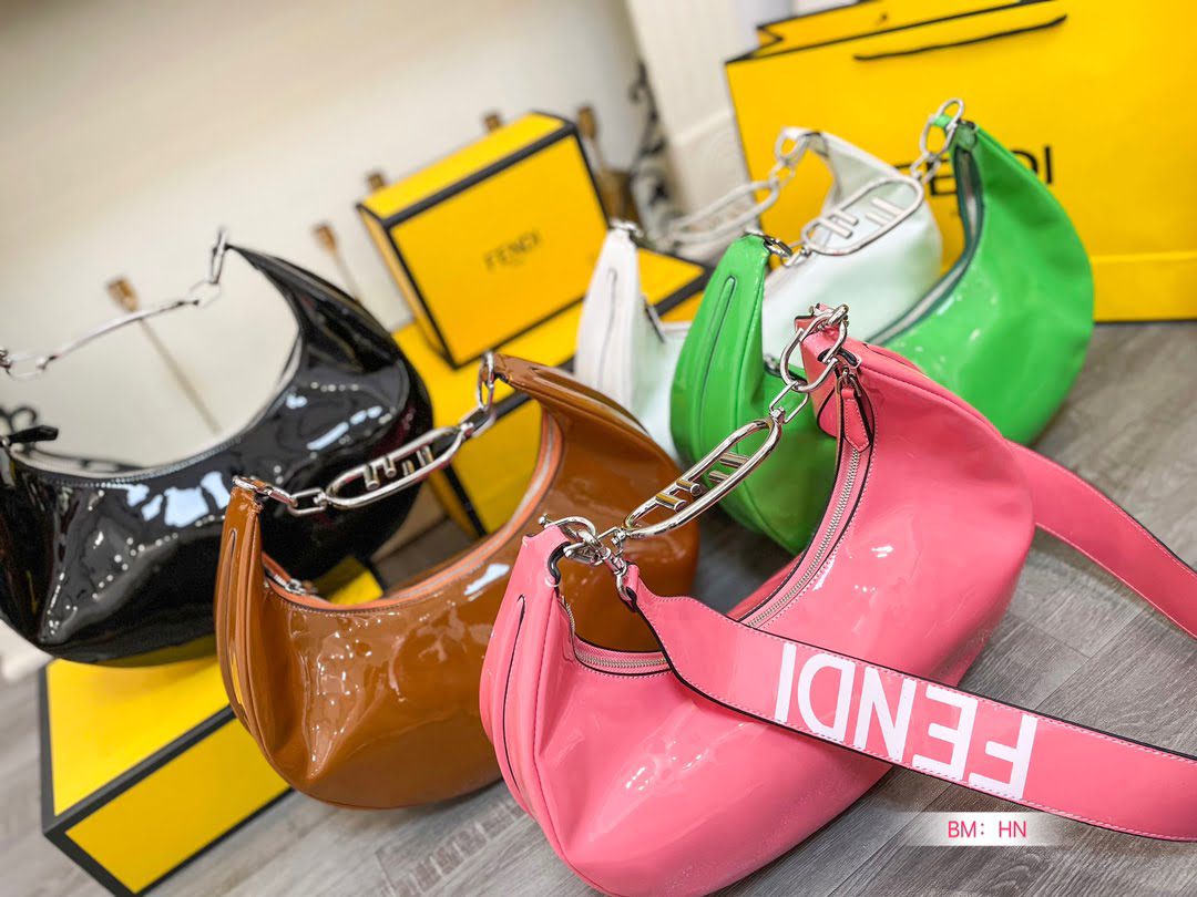 首页 BAGS FENDI FENDI Patent leather half moon bag Size: 34*16cm