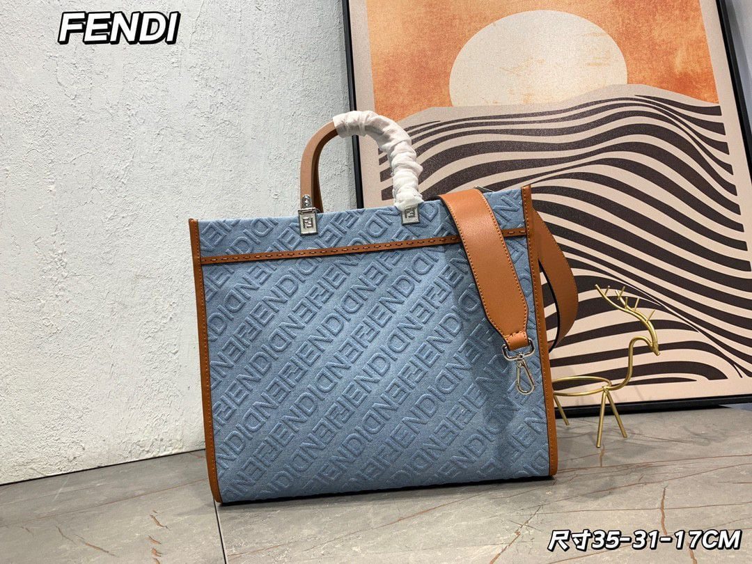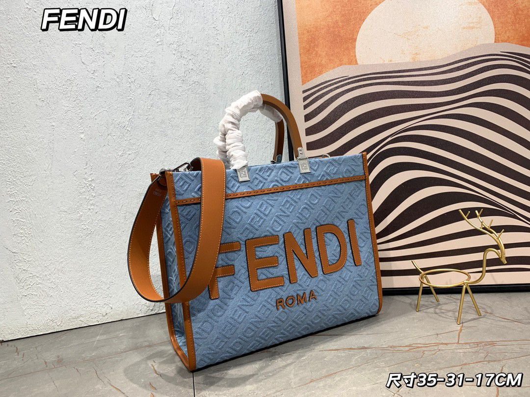 fendi sunshine Medium tote bag, decorated with fendi mirror pattern. Hard brown leather handle with fendi roma inscription. Features spacious lined internal compartments, imported leather contours and gold-finished metal pieces. Equipped with two handles and detachable shoulder strap, it can be carried on or over the shoulder. Size: 353117