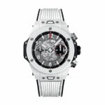The Hublot Big Bang Unico White Ceramic 411.JX.4802.RT.1904 Replica is a luxury watch. It features a titanium and sapphire case with a white 904L stainless steel bezel. The watch is powered by an automatic HUB1242 movement with a 60-hour power reserve and a precision of -3/+3 sec/day within COSC certification limits. The white rubber bracelet is adjustable for all sizes and is secured with a 904L stainless steel fold clasp.