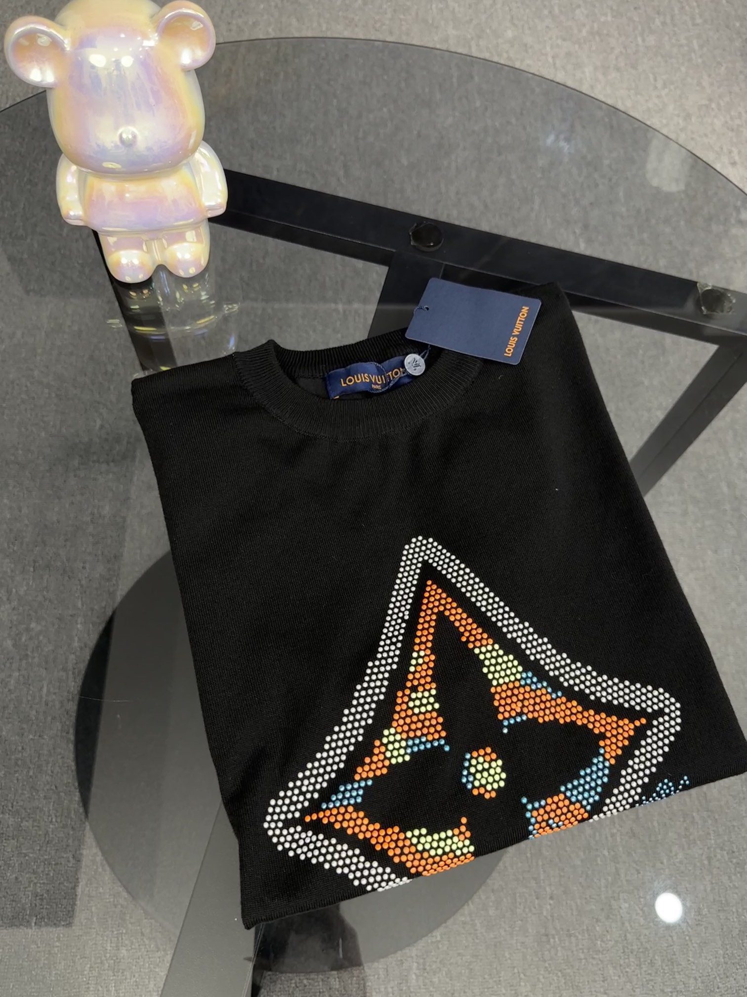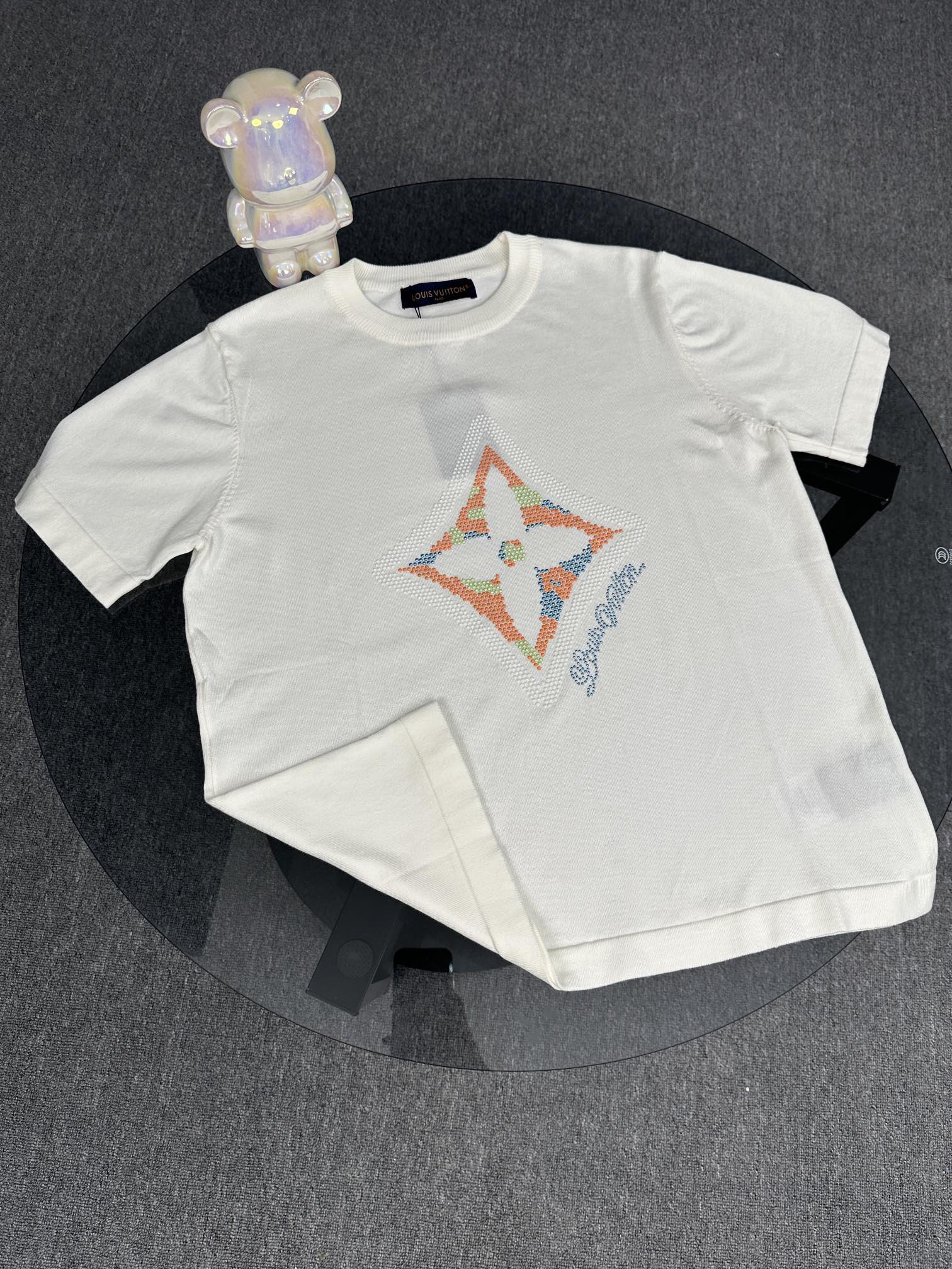 LV Louis Vuitton Clover Hot Diamond Knitted Short Sleeve YB Purchased and Printed