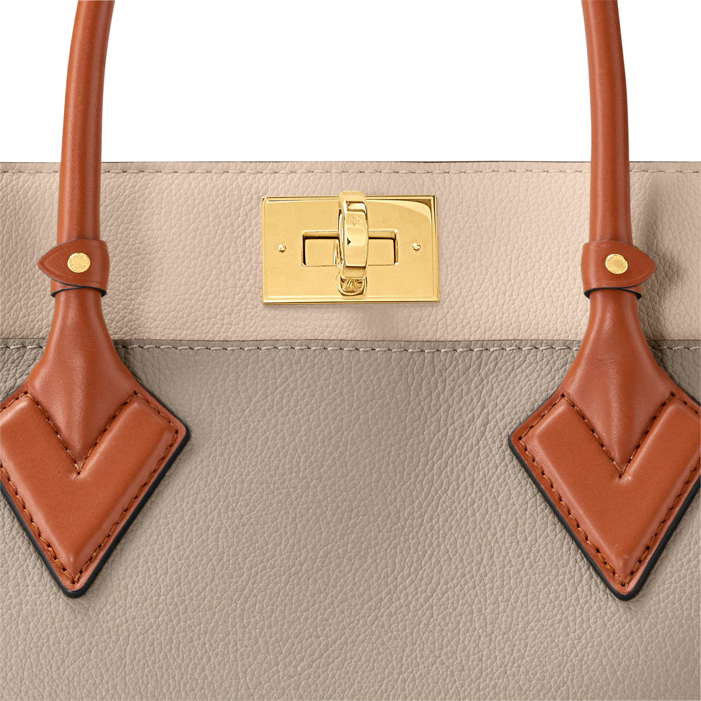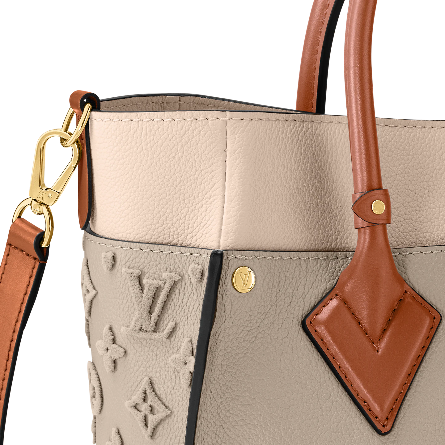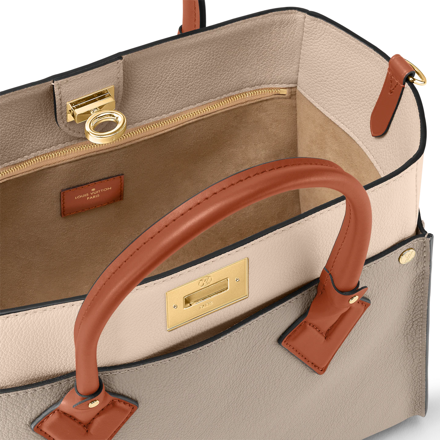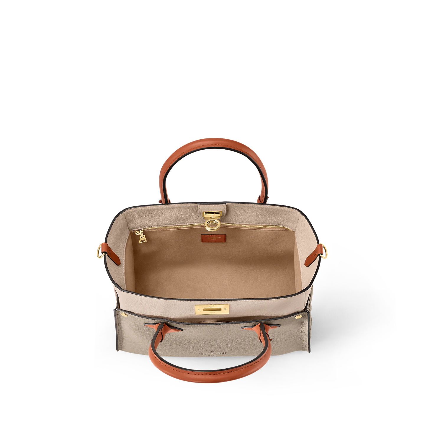 The perfect everyday bag. the On My Side MM tote is made from small-grained calf leather and discreetly signed with side panels in Nappa Softy leather featuring Monogram tufting. Eminently practical. its A4 size and square volume mean there’s room to pack all essentials. It has two leather handles for hand carry and a strap for cross-body wear.