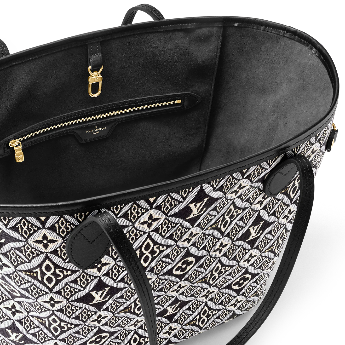 For Winter 2020. the House’s classic Neverfull MM tote is made from Nicolas Ghesqui??re’s new signature textile: a modern pattern featuring many of the House’s symbols. Inspired by wallpapers from the 1960s. Monogram Flowers and LV Initials are combined with 1854s. the year Louis Vuitton started his company. to create a pattern with a neo-vintage feel.