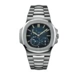 The Patek Philippe Nautilus Steel Blue Dial Moon Phase 5712/1A-001 Replica is a high quality watch. It features a 904L stainless steel case and bezel. with a steel color and sapphire crystal. The movement is an automatic caliber 240 PS IRM C LU. with a power reserve of 60 hours and precision of -3/+3 sec/day within COSC certification limits. The dial is blue with stick indices and Patek Philippe hour-markers. and the hands are stick-shaped 904L stainless steel.