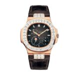 Experience perfection with the Patek Philippe Baguette Replica. This extraordinary timepiece boasts a 40.20mm case made of 904L stainless steel in an elegant rose gold color. Its impeccable craftsmanship is evident in the black dial. adorned with precise stick indices and hands also crafted from 904L stainless steel. The sapphire crystal ensures durability and clarity.Powered by an automatic movement with a remarkable 60-hour power reserve. this watch guarantees accurate timekeeping within COSC certification limits of -3/+3 sec/dayThe sweep motion of the second hand adds a touch of sophistication.