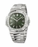 The Patek Philippe Diamond Bezel Replica is a high quality watch from the Nautilus family. It features a 904L stainless steel case with a black bezel and sapphire crystal. The movement is an automatic caliber 324 S C with a power reserve of 60 hours and precision of -3/+3 sec/day within COSC certification limits. The second hand has a sweep motion. The bracelet is made of 904L stainless steel with an adjustable link and a fold-over clasp. The dial is green with stick and dot indices and 904L stainless steel stick hands. The watch has a water resistance of 30m and is covered by a 2 year international warranty.
