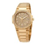 The Patek Philippe Nautilus 7010/1R-012 Replica is a high quality watch. It features an automatic movement with a caliber of E23-250 S C and a power reserve of 60 hours. The precision of the watch is within COSC certification limits. with a sweep motion second hand. The case is made of 904L stainless steel with a rose gold color. and the bezel is also made of stainless steel with a gem-set color. The crystal is made of sapphire glass and is 32.00 mm in size. The bracelet is also made of 904L stainless steel with an adjustable link for all sizes. and a fold clasp in rose gold. The dial is also rose gold with mixed indices and Patek Philippe hour-markers. The hands are made of 904L stainless steel and are stick-shaped. The watch also features a date function and has passed the 30m water resistance test.