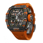 The Richard Mille RM3502 Red Replica is a high quality watch that is sure to turn heads. The case is made of 904L stainless steel and is carbon orange in color. The bezel is also made of 904L stainless steel and is carbon orange in color. The crystal is a sapphire crystal and the size is 44.50 X 49.94 mm with a thickness of 16.15 mm. The bracelet is made of rubber and is adjustable for all sizes. It has a double-fold clasp made of stainless steel.The dial is skeleton in color and has Arabic numerals as indices. The hour markers are made of 904L stainless steel and are in the form of numbers. The hands are made of 904L stainless steel and are in the form of sticks. The movement is automatic and the caliber is RMAC3 with a power reserve of 60 hours. It has a precision of (-3/+3 sec/day) within COSC certification limits and a sweep motion second hand. It has passed the 30m water resistance test and is under the protection of a full 2 years International United Luxury warranty.