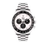 Immerse yourself in the luxurious essence of timeless craftsmanship with the Rolex Blaken Daytona Cosmograph Replica. This exquisite timepiece brings together the pinnacle of haute horlogerie and meticulous attention to detail. all in a replica that mirrors the grandeur of the authentic model. Picture this: the gleaming 904L stainless steel case and bezel. paired with a striking black bezel color that effortlessly complements the pure white dial. The dial captures the eye with its elegant stick and dot indices. and the precision-engineered stick hands made from the same high-grade 904L stainless steel. This is not just a watch; it’s an experience. an artifact of unparalleled sophistication that promises to turn heads and spark conversations.