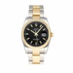 The Rolex Datejust 116203 replica is a stunning watch crafted with precision and care. The 904L stainless steel case is steel in color and features a yellow gold stainless steel bezel. The 36.00 mm case houses an automatic 3135 caliber movement with a 60-hour power reserve and a precision of -3/+3 sec/day within COSC certification limits. The black dial features stick indices and stick hands crafted from 904L stainless steel. The Oyster bracelet is adjustable and comes in a combination of yellow gold and steel.
