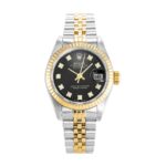 This Rolex Datejust Lady Diamond Replica is a stunning watch. It features a 904L stainless steel case with a yellow gold bezel and a sapphire crystal. The movement is an automatic caliber 2135 with a 60-hour power reserve and precision of -3/+3 sec/day within COSC certification limits. The bracelet is a 904L stainless steel Jubilee with adjustable links and a fold clasp. The dial is black with gem-set indices and 904L stainless steel stick hands. It also has an additional 24-hour hand that is adjustable. The watch is water-resistant up to 30m and comes with a 2-year international warranty.
