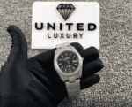 The bracelet. also crafted from 904L stainless steel. offers both durability and style. featuring an oyster clasp with adjustable links to ensure a perfect fit. Its cool. smooth texture rests comfortably against your skin. a daily reminder of the craftsmanship and luxury embodied in this iced out rolex replica. Tested for water resistance up to 30 meters. it offers peace of mind. safeguarding against everyday mishaps.