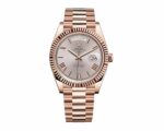 This Rolex Day-Date 228235 AR Stainless Steel With Rose Gold Wrapped Rhodium Dial Replica is a stunning watch. It features an automatic movement with a caliber of 3255 and a power reserve of 60 hours. It is certified within COSC limits and has a sweep motion second hand. The case is made of 904L stainless steel with a rose gold color and the bezel is also made of 904L stainless steel with a rose gold color. The crystal is sapphire and the size is 40.00 mm. The bracelet is also made of 904L stainless steel with an oyster type and adjustable links. The dial is nicknamed Sundust and is grey with Roman numerals as indices. The hour markers are made of 904L stainless steel and the hands are stick type.