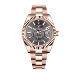 Imagine the timeless elegance and mechanical mastery of the Rolex Sky-Dweller 326935-0007 SRO Automatic Everose Rhodium Dial Oyster Replica adorning your wrist. This exquisite timepiece is more than a mere accessory; it’s a symbol of sophistication. a statement of refined taste. and a testament to top-tier craftsmanship. The alluring rose gold hue. achieved through the meticulous use of 904L stainless steel. captivates at first glance. while the detailed rhodium dial with stick and dot indices exudes an understated yet powerful elegance.