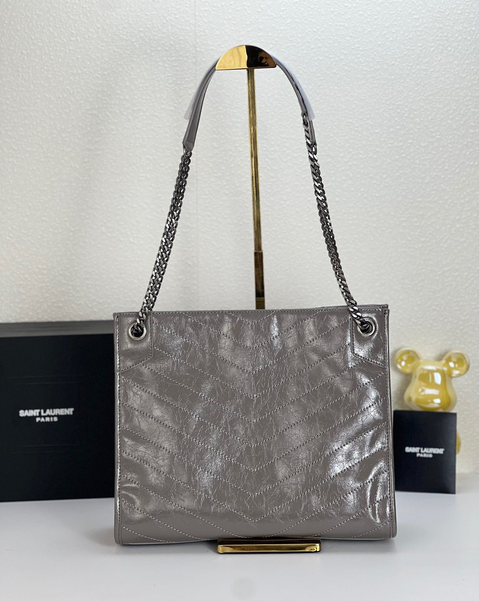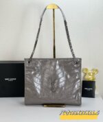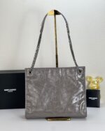 首页 BAGS YSL YSL NIKI Wrinkled retro oil wax skin Shoulder and backbody tote bag grey 577999 size: 33*27*11.5 cm