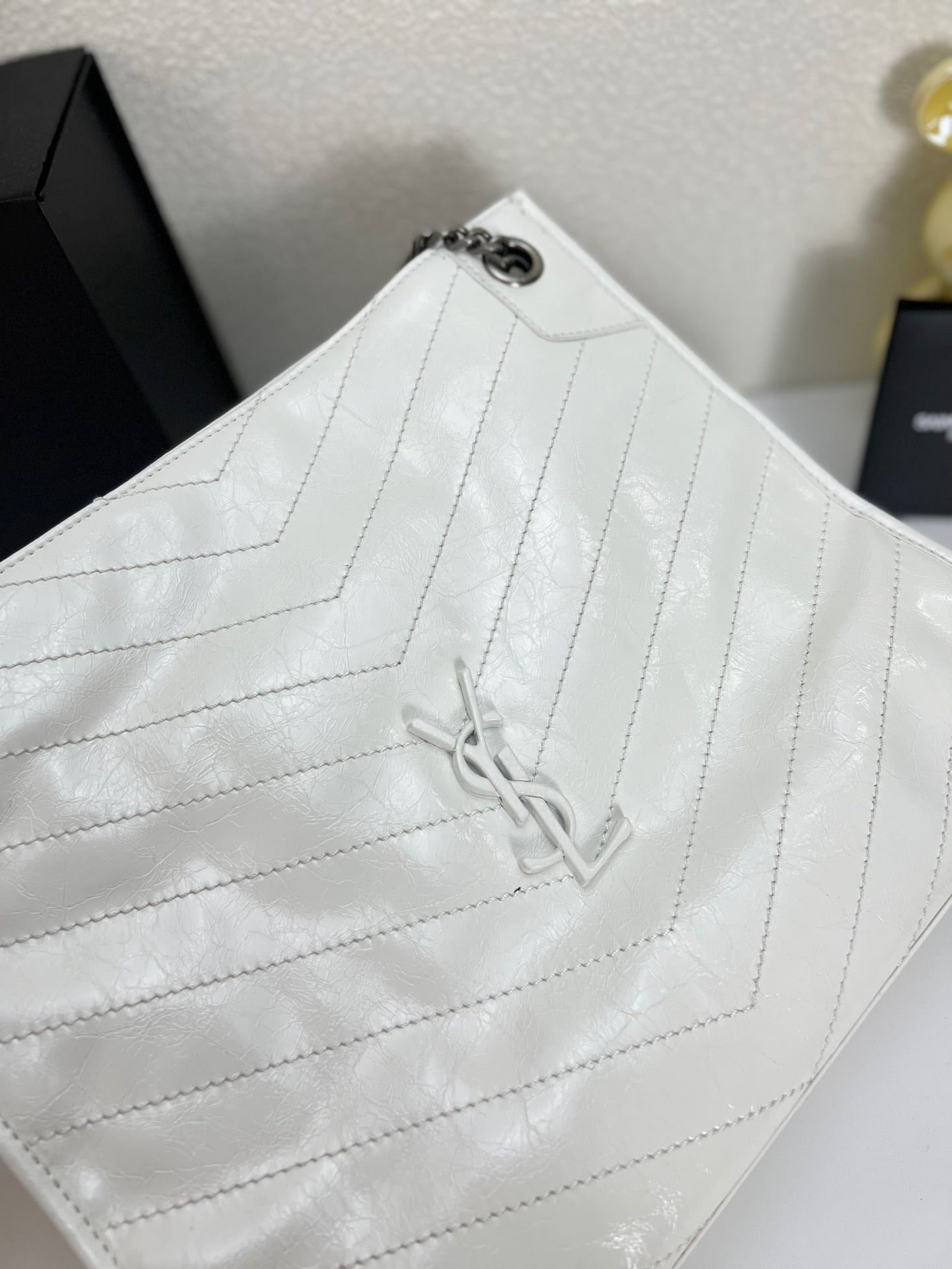 首页 BAGS YSL YSL NIKI Wrinkled retro oil wax skin Shoulder and backbody tote bag white 577999 size: 33*27*11.5 cm